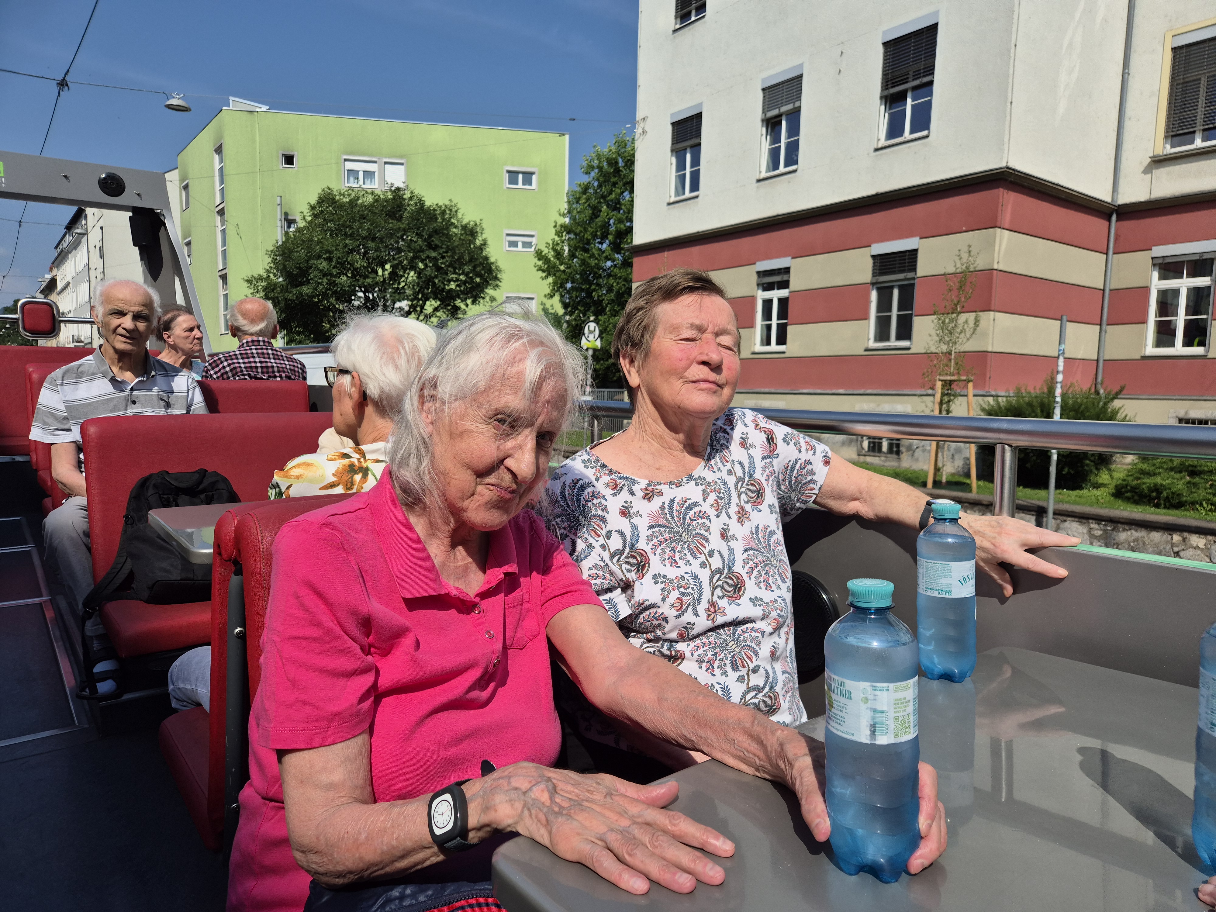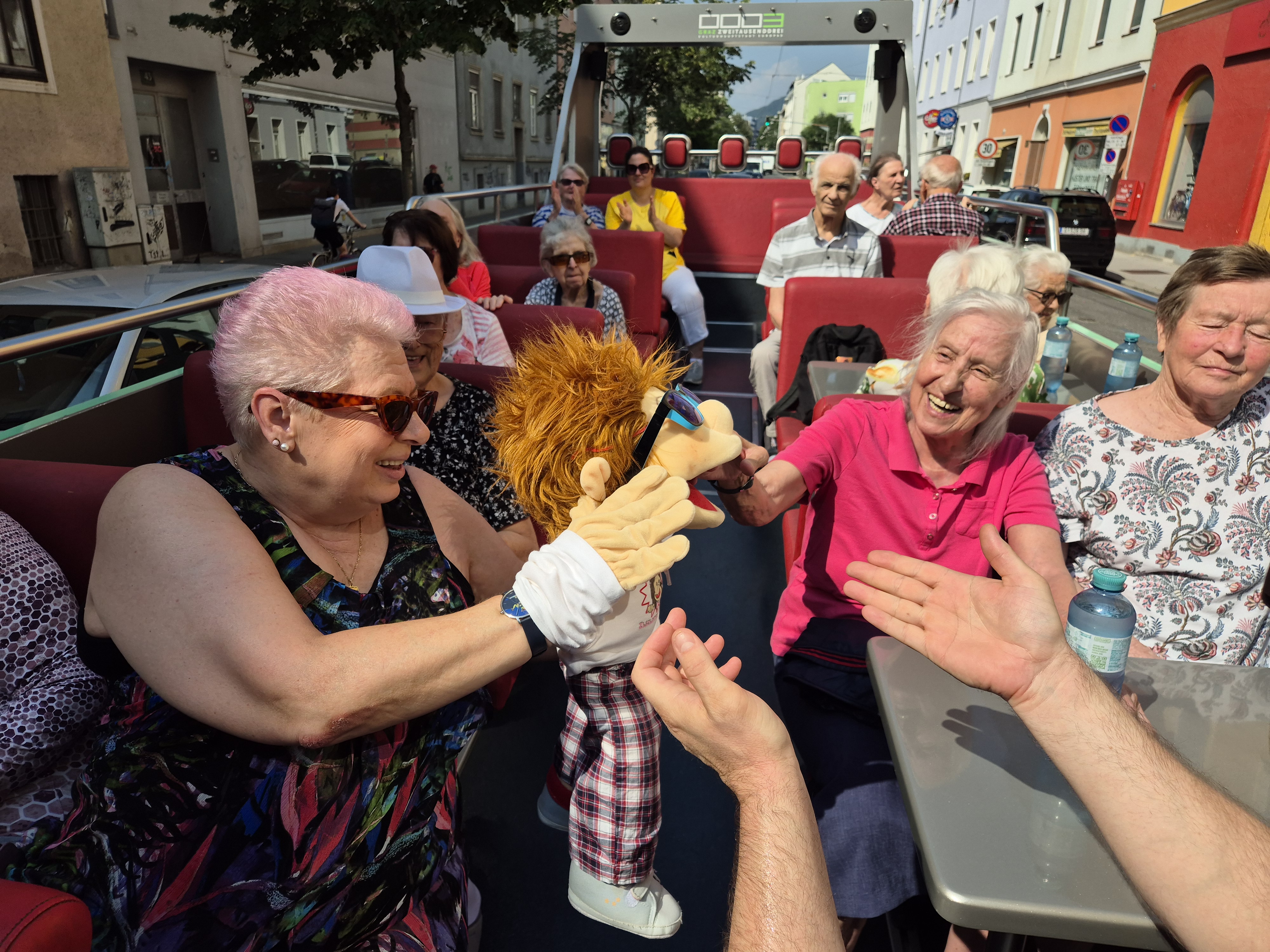 Der Sommer ist die perfekte Zeit, um auch die eigene Stadt neu zu entdecken. Das dachten sich auch die Mitarbeiter:innen des SeneCura Pflegeheims Graz-Lend und organisierten für die Bewohner:innen und Angehörigen eine Sightseeing-Tour durch Graz. Mit einem offenen Doppeldecker-Bus ging es bei bestem Sommerwetter durch die Grazer Altstadt, vorbei an allen Sehenswürdigkeiten der Stadt. Alle genossen den gemeinsamen Ausflug sehr!